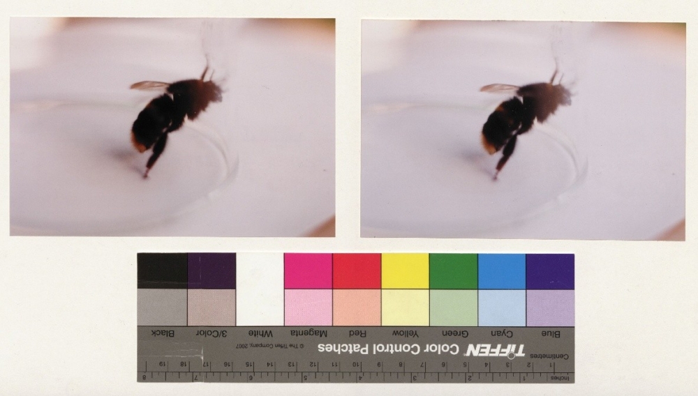 BU: Farbabgleich mit Farbreferenz von Wolfgang Tillmans, „bee“, 1999, chromogener Farbabzug, 10 x 15 cm, Kunststiftung Bernhard Sprengel und Freunde im Sprengel Museum Hannover